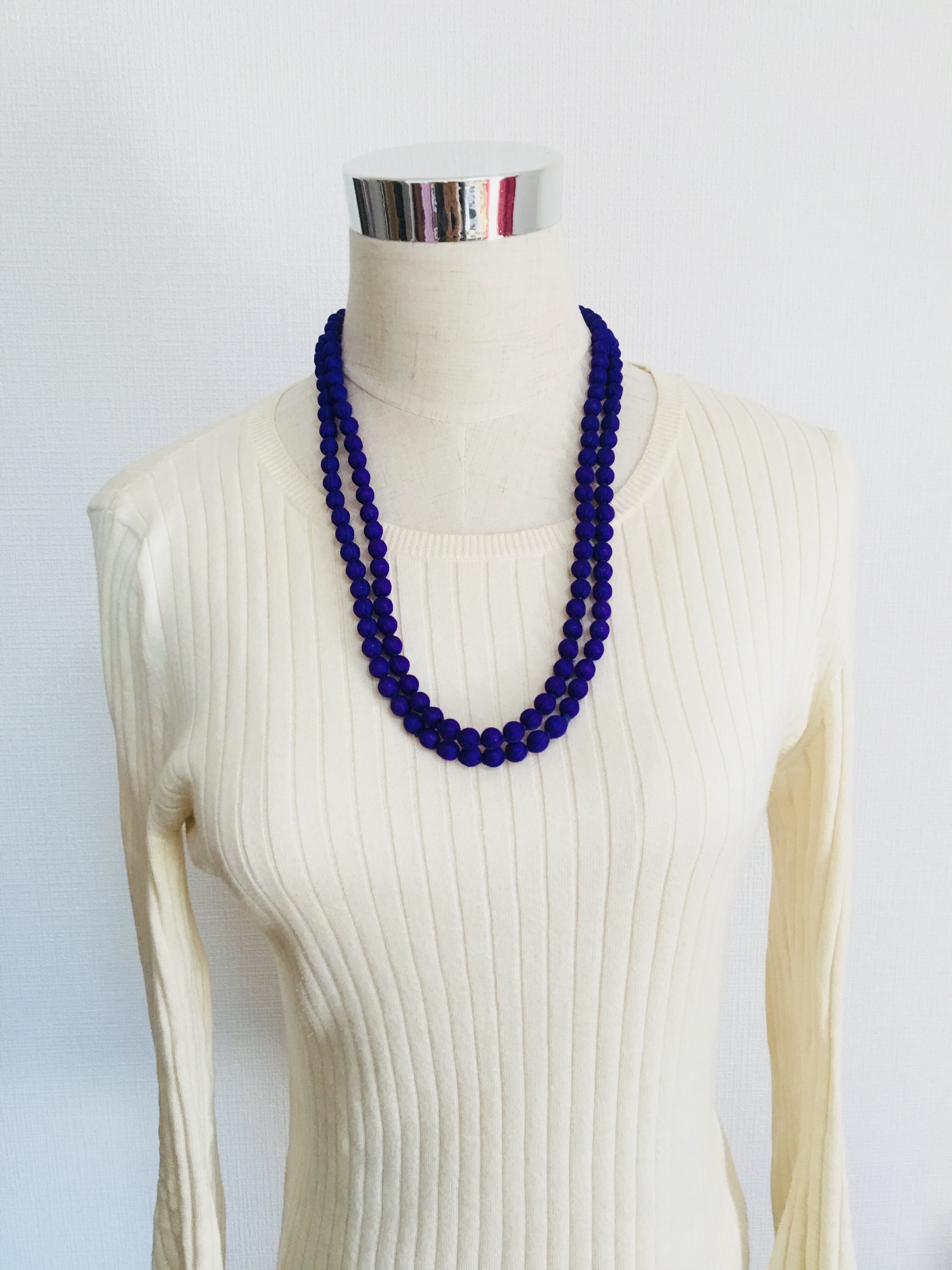 1連としてロング、2重にするとダブル、お腹の前で結んでも使えるアレンジ自由自在のシルクボールネックレス。